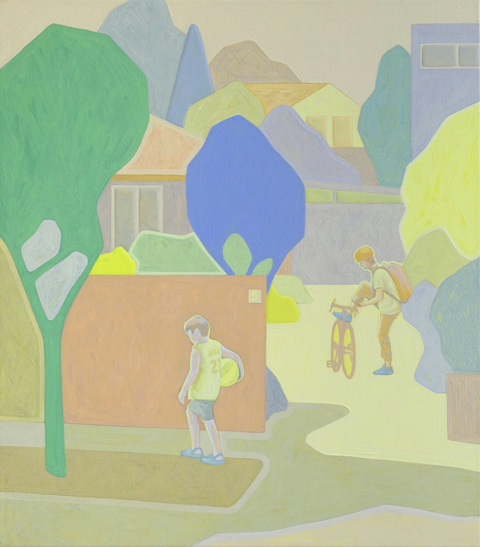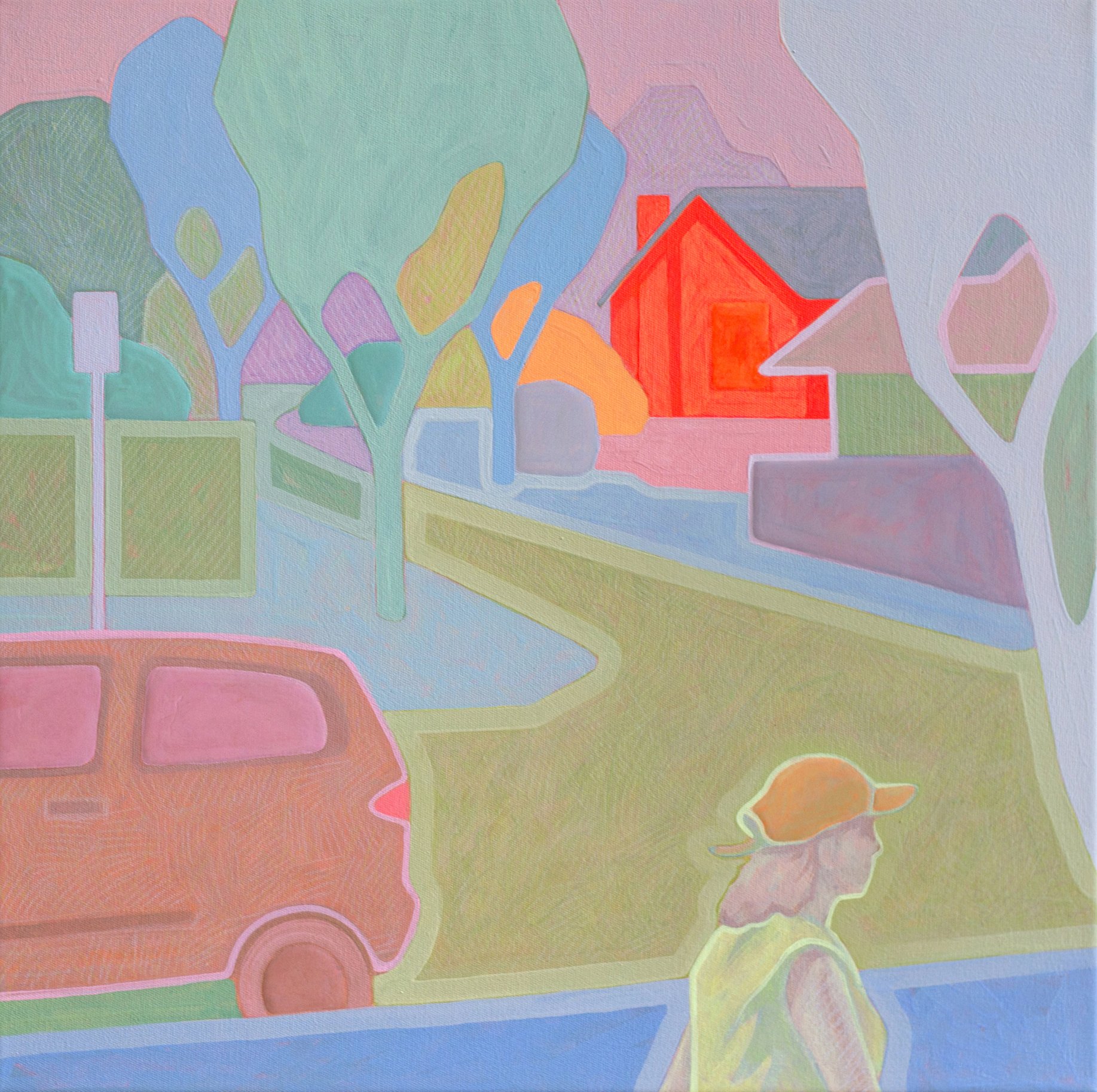 Suburban Stroll , 2025, 40cm x 40cm, Flashe (vinyl paint), Acrylic and Wax Pencil on Canvas
