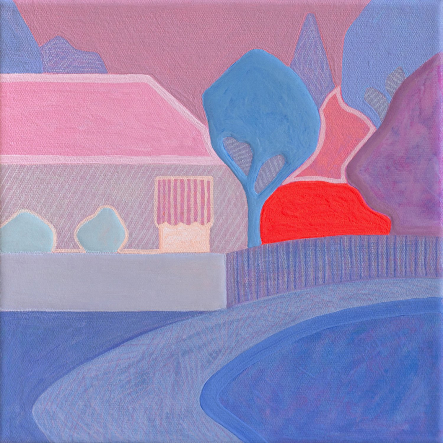 House on the Bend , 2026, 20cm x 20cm, Flashe (vinyl paint), Acrylic and Wax Pencil on Canvas
